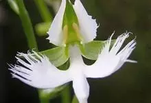 鹅毛玉凤花 Schltr.)是兰科玉凤花属植物。鹅毛玉凤花的块茎长圆状卵形或长圆形;茎疏生叶,其上具数枚小叶;叶长椭圆形,基部抱茎,干时边缘具狭的白色镶边;花序具多花,花序轴无毛;花白色,…全部>>
