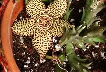 豹皮花 L.C.Leach)是马利筋亚科豹皮花属植物。肉质植物,茎亮绿色,几株簇生在一起,高约10厘米,状似仙人掌,四棱,棱稍钝,棱具粗厚软刺,光滑,绿色。无叶。…全部>>