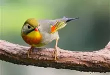 银耳相思鸟小型鸟类,体长14~18厘米。头顶黑色,耳羽银灰色,前额橙黄色;外侧飞羽橙黄色,基部朱红色,极为鲜艳、醒目。尾圆形,尾上、尾下覆羽朱红色,尾暗灰褐色,外侧尾羽橙黄色,其余上体橄榄绿或橄榄黄色。…全部>>