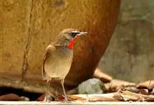 红点颏:是鸟纲、鹟科的鸣禽。又名西伯利亚歌鸲。体长14-17厘米,体重16-27克。雄鸟头部、上体主要为橄榄褐色。眉纹白色。颏部、喉部红色,周围有黑色狭纹。胸部灰色,腹部白色。雌鸟颏部、喉部不呈赤红色,…全部>>