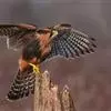 红隼:是隼科、隼属的小型猛禽之一。体重173-335克,体长305-360毫米。翅狭长而尖,尾亦较长,外形和共同爪隼非常相似。雄鸟头蓝灰色,背和翅上覆羽砖红色,具三角形黑斑;腰、尾上覆羽和尾羽蓝灰色,…全部>>