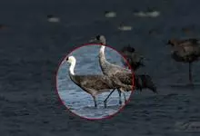 白头鹤,是鹤形目鹤科鹤属动物。白头鹤为大中型涉禽,体形较丹顶鹤小,体长90~97厘米,除头部和颈的上部为白色外,其余各部羽毛均为灰色;眼先至额部为黑色,头顶上的皮肤裸露无羽毛,呈鲜红色、虹膜深褐色,…全部>>
