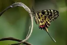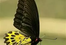 金裳凤蝶是凤蝶科、裳凤蝶属的动物。金裳凤蝶身体呈黑色,头、颈和胸侧有红毛,腹部有黑黄两色相间条纹,雄蝶前翅黑色,具黑天鹅绒光泽,各脉两侧灰白色,后翅金黄色,各室外缘有等腰三角形黑斑1枚,斑内侧有晕,…全部>>