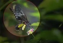 荧光裳凤蝶是凤蝶科裳凤蝶属的一种大型蝴蝶,该物种共有3个亚种。该蝶飞翔的时候姿态优美,前翅黑色,后翅金黄色和黑色交融的斑纹在阳光照射下金光灿灿,显得华贵美丽。幼虫寄主为多种马兜铃属的植物,取食马兜铃…全部>>