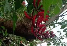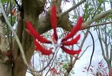 鹦哥花是豆科刺桐属植物,小乔木或乔木。树干和枝条具皮刺。羽状复叶,叶柄平滑,顶生小叶近肾形,侧生小叶斜宽心形,两面无毛。总状花序生于先端叶腋,花鲜红色,大,具花梗,苞片单生,卵形,花萼陀螺形,花冠红…全部>>