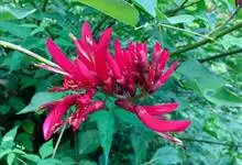 龙牙花是豆科刺桐属小乔木或灌木植物。株高可达3-5米;树干和分枝有散生皮刺;羽状复叶具3小叶,叶柄无毛,有时有下弯的刺,小叶菱状卵形,先端渐尖而钝或长渐尖,基部宽楔形,两面无毛,…全部>>