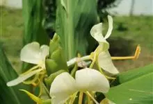 姜花又名野姜花。是姜科姜花属的多年生草本植物,茎高1-2米;叶片长圆状披针形或披针形,叶面光滑,叶背被短柔毛;穗状花序顶生,椭圆形,花芬芳,白色;蒴果卵状三棱形,微黄绿色;种子鲜红色,具橘红色的假种皮。…全部>>