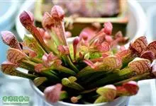 红瓶子草是一种相对体形较大、气质高雅的食虫植物,叶子成瓶状直立,颜色鲜艳,共有五个亚种。瓶高在26- 61厘米之间,整个红色。形态和猪笼草的笼子相似,能分泌蜜汁和消化液,受蜜汁引诱的昆虫失足掉落瓶中,…全部>>