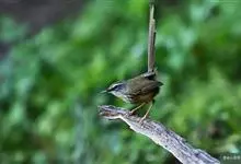 黑喉山鹪莺:体长16厘米,是一种长尾的褐色鹪莺。具明显的白色眉纹及形长的尾。特征为胸具黑色纵纹。上体褐色,两胁黄褐,腹部皮黄;脸颊灰,具明显的白色眉纹及形长的尾。无下髭纹,下体少黑色。虹膜浅褐色,…全部>>