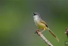 黄腹鹪莺:体长13厘米,是一种体型略大而尾长的橄榄绿色鹪莺。喉及胸白色,以下胸及腹部黄色为其特征。头灰,有时具浅淡近白的短眉纹;上体橄榄绿色;腿部皮黄或棕色。换羽导致羽色有异。繁殖期尾较短,…全部>>