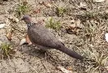 珠颈斑鸠,别名花斑鸠、珍珠鸠、花脖斑鸠、鸪鹪,是鸠鸽科副斑鸠属鸟类。体型中等,体长27~34cm,体重120~205g,雌鸟和雄鸟羽色相似,但雌鸟不如雄鸟羽色亮泽。珠颈斑鸠前额至头顶羽色稍淡,…全部>>