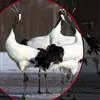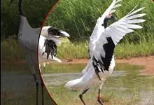 丹顶鹤:是鹤科、鹤属的一种大型涉禽,体长120-160厘米。颈、脚较长,通体大多白色,头顶鲜红色,喉和颈黑色,耳至头枕白色,脚黑色,站立时颈、尾部飞羽和脚黑色,头顶红色,…全部>>