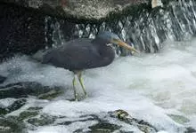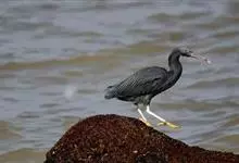 岩鹭,鹭科白鹭属鸟类,中型涉禽,体长60-75厘米,翼长25-30毫米,体重330-700克。嘴较长而粗钝,颈长,脚较粗短,体色有白色和黑色两种色型。黑色型较常见,体羽清一深灰色并具短冠羽,…全部>>