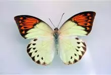 鹤顶粉蝶是鳞翅目粉蝶科鹤顶粉蝶属昆虫,又称端红蝶。雄蝶翅白色,前翅前缘及外缘黑色,自前缘二分之一处至外缘近后角处有黑色锯齿状斜纹,围住顶部三角形赤橙色斑,…全部>>