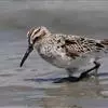 阔嘴鹬是涉禽,体长17厘米。特征为翼角常具明显的黑色块斑并具双眉纹。与黑腹滨鹬平滑下弯的嘴相比,阔嘴鹬的嘴具微小纽结,使其看似破裂。上体具灰褐色纵纹;下体白,胸具细纹;腰及尾的中心部位黑而两侧白。…全部>>