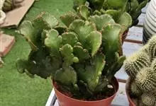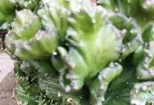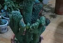 麒麟掌,是大戟科大戟属多年生植物。为金刚纂的带化变异变种。麒麟掌的株乳汁丰富;它的茎圆柱状,上部多分枝,绿色;叶互生,稀少,常生于嫩枝顶端脊上,倒卵形、倒卵状长圆形或匙形,顶端钝圆,具小凸尖,全缘,…全部>>