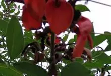鹦哥花是豆科刺桐属植物,小乔木或乔木。树干和枝条具皮刺。羽状复叶,叶柄平滑,顶生小叶近肾形,侧生小叶斜宽心形,两面无毛。总状花序生于先端叶腋,花鲜红色,大,具花梗,苞片单生,卵形,花萼陀螺形,花冠红…全部>>