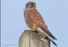 红隼:是隼科、隼属的小型猛禽之一。体重173-335克,体长305-360毫米。翅狭长而尖,尾亦较长,外形和共同爪隼非常相似。雄鸟头蓝灰色,背和翅上覆羽砖红色,具三角形黑斑;腰、尾上覆羽和尾羽蓝灰色,…全部>>
