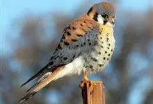 红隼:是隼科、隼属的小型猛禽之一。体重173-335克,体长305-360毫米。翅狭长而尖,尾亦较长,外形和共同爪隼非常相似。雄鸟头蓝灰色,背和翅上覆羽砖红色,具三角形黑斑;腰、尾上覆羽和尾羽蓝灰色,…全部>>