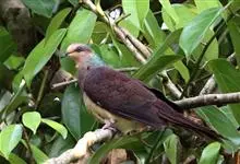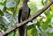 斑尾鹃鸠体长38厘米,是体大而尾长的褐色鹃鸠。背及尾满布黑色或褐色横斑。头灰,颈背呈亮蓝绿色。胸偏粉,渐至白色的臀部。雌鸟无亮绿色。背上横斑较密,尾部横斑有别于同地区的其他鹃鸠。不常见,…全部>>