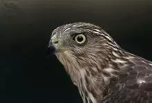 褐耳鹰的体形比苍鹰要小得多,为小型猛禽,体长为31-44厘米,体重217-325克。上体灰色,下体具赤褐色横斑。第6枚初级飞羽外羽片无缺刻,次外侧的4对尾羽具5道黑褐色横斑。眼先具白色短羽。…全部>>