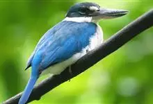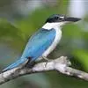 白领翡翠:有50个亚种。体长18厘米,体重35-40克。是一种蓝白色翡翠鸟。头顶、两翼、背及尾呈亮丽蓝绿色;过眼纹黑色;眼先黑色,眼眉白色或浅黄色,嘴上部具白点。以白色的颈环及下体为识别特征。…全部>>
