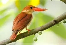赤翡翠:是佛法僧目翠鸟科的鸟类。共有10个亚种。体长25-27厘米,体重76-77 克。头、颈、背、腰尾上覆羽、尾羽棕赤色,是翡翠亚科中分布最北的成员,虽然其主要分布区位于东南亚地区,…全部>>