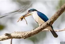 白领翡翠:有50个亚种。体长18厘米,体重35-40克。是一种蓝白色翡翠鸟。头顶、两翼、背及尾呈亮丽蓝绿色;过眼纹黑色;眼先黑色,眼眉白色或浅黄色,嘴上部具白点。以白色的颈环及下体为识别特征。…全部>>