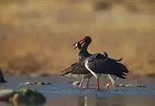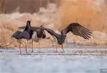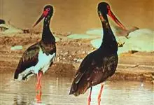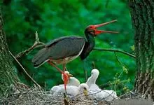 黑鹳是鹳形目鹳科鹳属鸟类,俗称乌鹳、钢鹳、老鹤。黑鹳头、颈和脊均呈黑褐色,故名黑鹳。黑鹳上体羽黑色、并带有绿紫色金属光泽,胸腹部羽白色;嘴、腿均红色;两性相似;成鸟嘴长而直,基部较粗,…全部>>