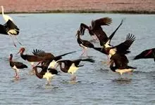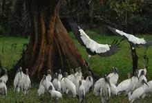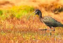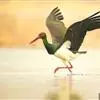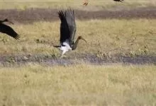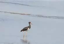 黑头鹮鹳:大型涉禽。体长102厘米,翼展150-175厘米,体重2050-2640克。寿命10年。嘴长而粗壮,飞时头颈伸直。雌雄相似。成鸟上体白色,下体白色。翼下覆羽有黑色横带,具绿色光泽和白色羽缘。…全部>>