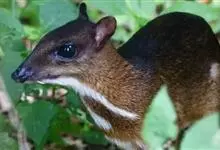 鼷鹿,别名小鼷鹿,共38个亚种。体形略比野兔大,体重1.3~2.0kg,体长420~630mm,肩高约200mm,是仅次于蹄兔目成员最小的有蹄类动物,也是鼷鹿科种体型最小的一种。面部尖长,无角,…全部>>