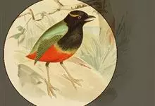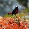 红头咬鹃: 体大,体长约33厘米,体重75-110克。头、颈暗绯红色;背、肩锈褐色。两翅黑色,翅上覆羽和内侧飞羽密被白色细虫蠹斑纹,初级飞羽黑色,外侧具白色羽缘;腰和尾上覆羽较多锈色。中央尾羽深栗色,…全部>>