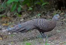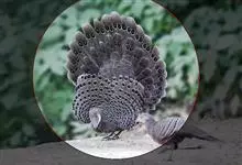 灰孔雀雉:雄鸟体长50-67厘米,体重456-710克;雌鸟体长33-52厘米,体重460-500克。雄鸟全身羽毛黑褐色,…全部>>