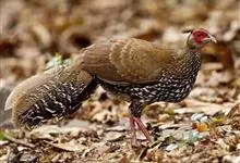 红腹角雉属于鸡形目雉科,雄鸟体羽及两翅主要为深栗红色,满布具黑缘的灰色眼状斑,下体灰斑大而色浅。雌鸟上体灰褐色,下体淡黄色,杂以黑、棕、白斑。全部>>