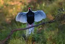 黑鹇是鸡形目雉科目鹇属鸟类,又称鸬雉、黑鸡。体型中等。雄鸟上体黑褐色,背羽具黑紫色金属光泽;头顶具黑羽冠;脸部裸皮呈红色,散生稀疏黑色纤羽;尾长而侧扁,中央两对尾羽红褐色,…全部>>