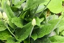 阔叶油点百合又名非洲玉簪,是天门冬科绵枣儿亚科的多年生草本植物。叶片浅绿,全部丛生,上面散布深色的斑点。原产于非洲,喜半荫、排水良好、温暖的环境,稍耐低温。油点百合因其叶片往往有各种斑点,花白色带绿色,…全部>>