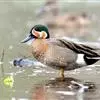 绿翅鸭是小型鸭类,体长37厘米,体重约0.5千克。嘴脚均为黑色。雄鸟头至颈部深栗色,头顶两侧从眼开始有一条宽阔的绿色带斑一直延伸至颈侧,尾下覆羽黑色,两侧各有一黄色三角形斑,在水中游泳时,极为醒目。…全部>>