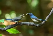 棕腹大仙鹟:体重24-28克,体长15-17厘米,是一种小型的色彩亮丽的鹟。雄鸟上体深蓝,下体棕色,脸黑,额、颈侧小块斑、翼角及腰部亮丽闪辉蓝色。与棕腹仙鹟易混淆,区别在色彩较暗。雌鸟灰褐,…全部>>