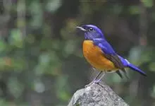 棕腹蓝仙鹟,Niltava vivida,鹟科仙鹟属的一种小型鸣禽,善在空中飞捕昆虫,中等体型18厘米,上体蓝,下体棕色,具黑色眼罩,胸橘黄渐变成臀部的皮黄色。国内分布于四川、云南、西藏和台湾等地。…全部>>
