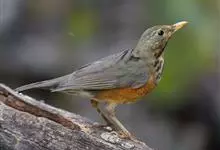 灰背鸫,又名灰乌鸫,是雀形目鸫科鸫属鸟类。雄鸟额及整个上体为橄榄灰色,眼先黑色,头侧微沾棕褐色,耳羽黑褐色杂以细白羽干纹;飞羽和尾羽褐黑色,外翈缀有灰蓝色;下体颏、喉灰白色具黑褐色羽干纹,胸淡灰色,…全部>>