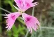 瞿麦 是石竹科、石竹属多年生草本,别名:高山瞿麦,高50-60厘米,有时更高。茎丛生,直立,绿色,无毛,上部分枝。叶片线状披针形,顶端锐尖,中脉特显,基部合生成鞘状,绿色,有时带粉绿色。包于萼筒内,…全部>>