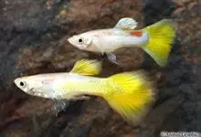 孔雀花鳉 ,俗名孔雀鱼,也称为凤尾鱼、彩虹花鳉、虹鳉、古比鱼等,是花鳉科花鳉属的一种热带鱼,雌雄鱼的体型和色彩差别较大,成年雄鱼身体瘦小,体长3-4厘米,体色绚烂多彩、体型优美;成年雌鱼体长5厘米…全部>>