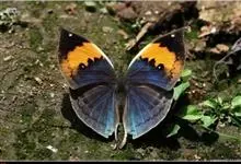 枯叶蛱蝶,又名木叶蝶、树叶蝶等,属于蛱蝶科。翅正面黑褐色,具深蓝色光泽,前翅顶角尖出,顶区有1枚小白点,中部有1条倾斜的橙色斑带,从前缘延伸至Cu室外缘,u室中部有1枚黑色圆斑,…全部>>