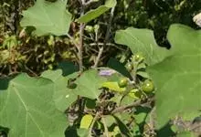 刺天茄,是茄科茄属的多年生草本植物。茎直立,枝条有刺;叶片大,互生,卵形或椭圆形,有长柄,叶面有短柔毛;花单生于枝顶,外面密被星状绒毛及细直刺,果被星状毛及直刺,浆果球形,光亮,…全部>>