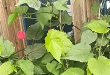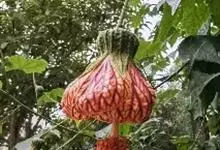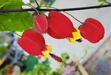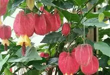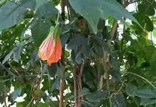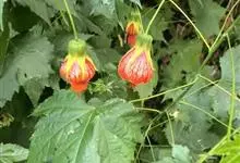 红萼苘麻是锦葵科、苘麻属常绿软木质灌木,叶绿色,长5-10厘米,心形,叶端尖,叶缘有钝锯齿,有时分裂,有细细的叶柄;叶互生,掌状叶脉;花单生于叶腋,具长梗,下垂;花萼红色,半套着大约4厘米长的花瓣,…全部>>