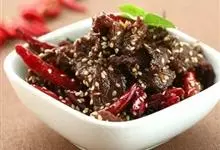 主料:牛肉500克 调料:花生油100克,大葱20克,姜15克,料酒10克,白砂糖25克,芝麻5克,盐10克,辣椒10克,花椒5克,味精2克,辣椒油25克全部>>