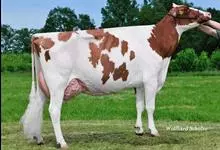 西门塔尔牛是偶蹄目牛科牛属哺乳动物。 体躯长,呈圆筒状,肌肉丰满;头较长,面宽,颈长中等,角较细而向外上方弯曲,尖端稍向上;前躯较后躯发育好,胸深,尻宽平,四肢结实,大腿肌肉发达,乳房发育好。…全部>>