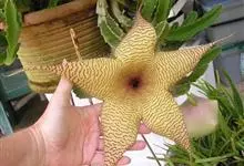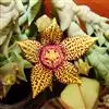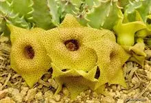 巨花犀角又称大豹皮花,是夹竹桃科犀角属的一种植物。茎粗,花大,边缘生长细毛。植株柱形多分枝呈丛生,柱形具4棱,棱缘具细小疣突。花大,五角星形黄色,并有横向棕褐色斑纹,似豹皮而得名。花期夏秋两季。…全部>>