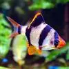 虎皮鱼又名四间鱼、品品鱼等。隶属鲤形目鲤科,热带淡水鱼类。其体高,侧扁略呈卵圆形。体呈浅黄色,背部为金黄色,背鳍、腹鳍、尾鳍和吻部均为鲜红。鱼体上有四条黑色粗带状竖纹,第一条竖纹通过眼部,…全部>>