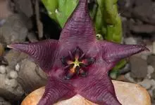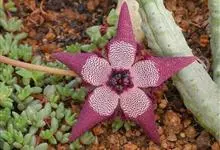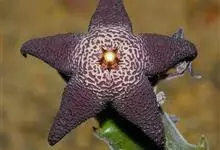 巨花犀角又称大豹皮花,是夹竹桃科犀角属的一种植物。茎粗,花大,边缘生长细毛。植株柱形多分枝呈丛生,柱形具4棱,棱缘具细小疣突。花大,五角星形黄色,并有横向棕褐色斑纹,似豹皮而得名。花期夏秋两季。…全部>>